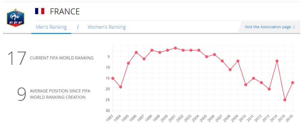 La Francia solo perdió con la Inglaterra (11ª) y ganó a Alemania (4ª), Portugal (8ª), Holanda (14ª) y Rusia (29ª);