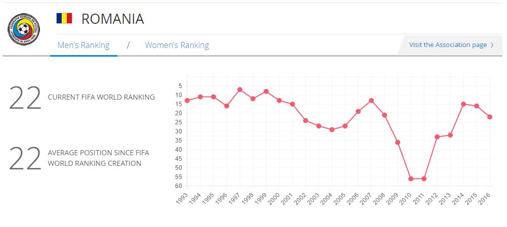 La Rumanía solo perdió con la Ucrania (19ª) y empató con España (6ª), Italia (12ª), Hungría (20ª), Grecia (40ª) y Congo (52ª).